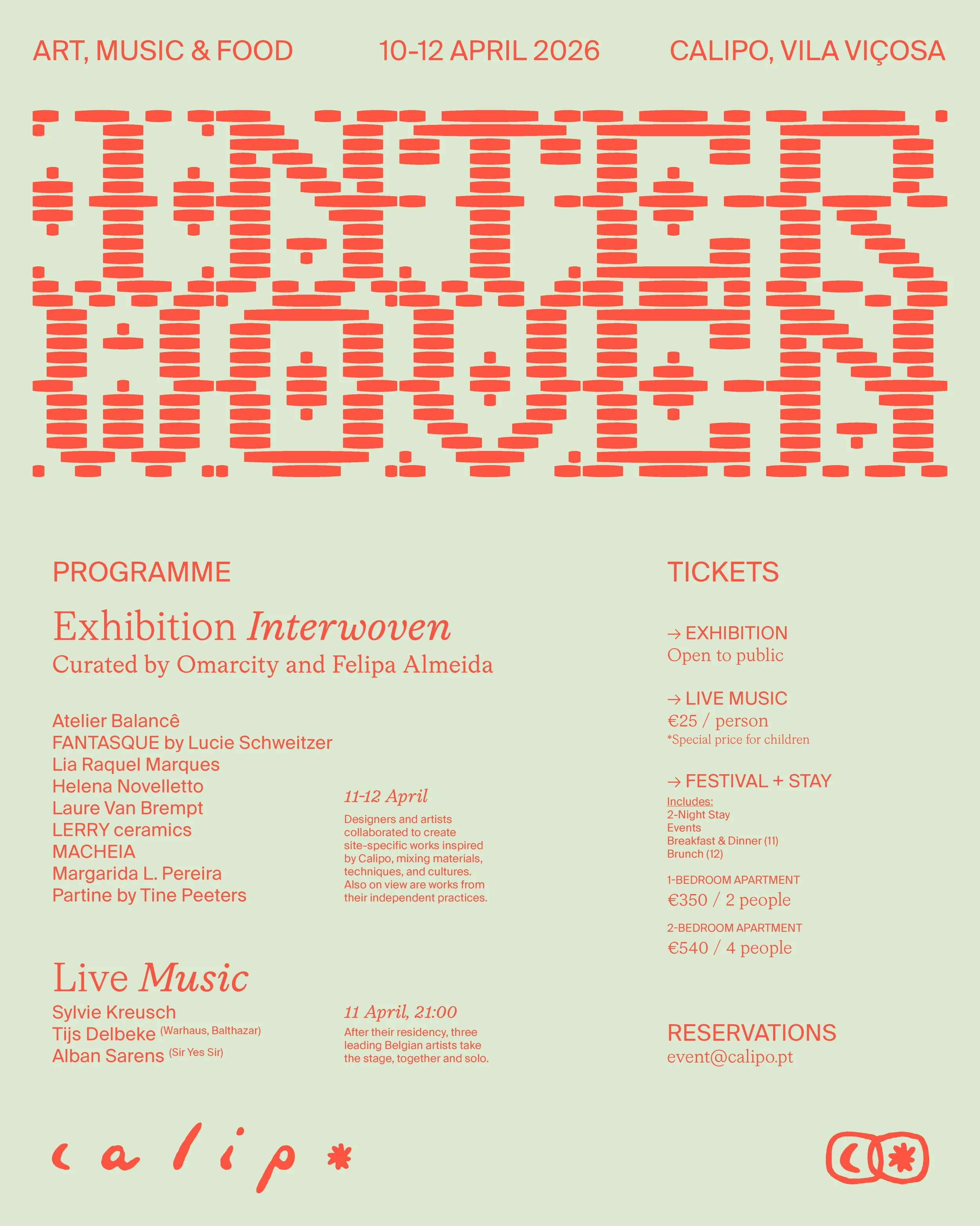Set within the historic palace and regenerative landscape of Calipo, INTERWOVEN is anexhibition and festival programme taking place from 10–12 April 2026 in Alentejo.